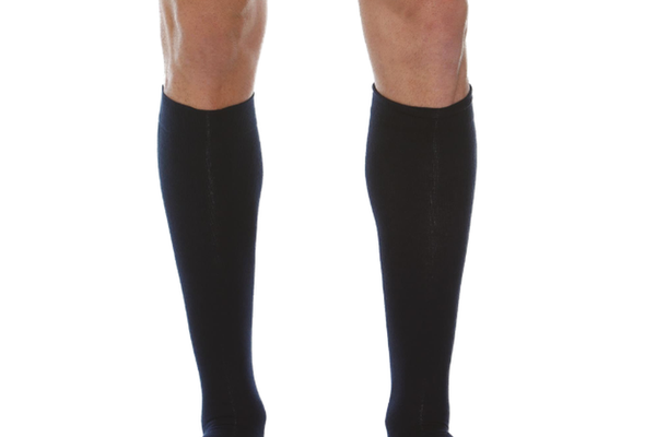 Sosete din lana si casmir, pana la genunchi, bleumarin - concepute pentru a oferi o compresie moderata, imbunatatind circulatia sanguina si reducand riscul de varice si umflaturi.