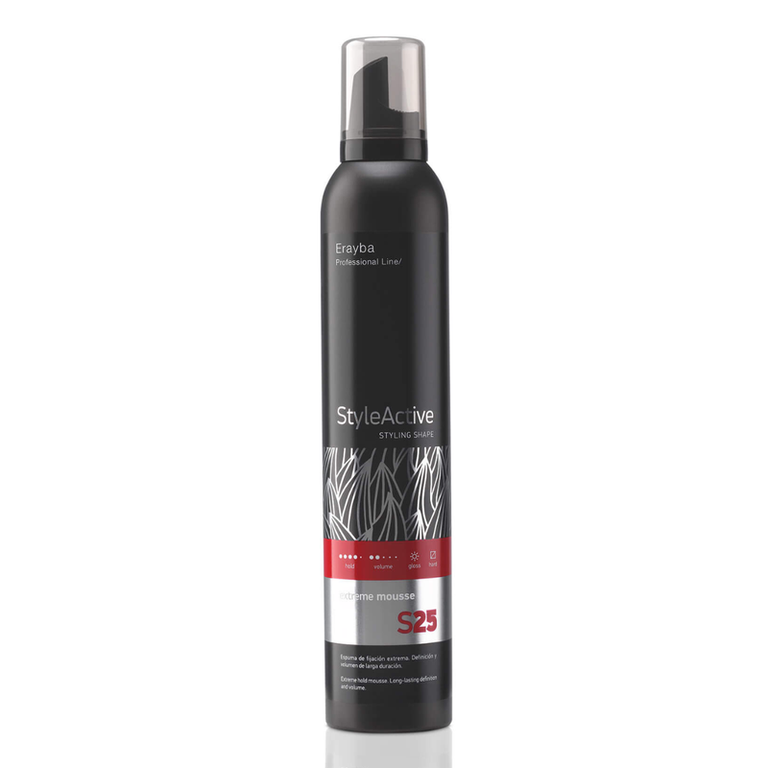 Erayba StyleActive S25 Extreme Mousse este o spumă de fixare extremă, oferind definiție maximă și susținere de lungă durată. Controlează coafura, adăugând textură, volum și corp părului. Produsul include un filtru de protecție UV.