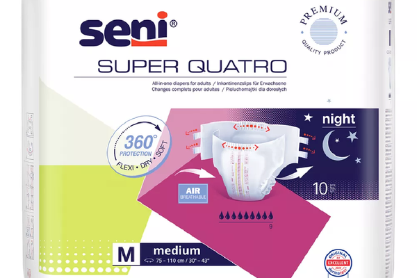 Scutecele cu sistem inchis Super Seni Quatro asigura confort si protectie eficienta in cazurile de incontinenta urinara si fecala foarte grava atat pentru persoanele cu o conditie fizica buna (mobili), cat si pentru pacienti imobilizati la pat.