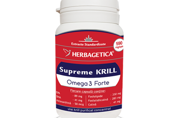 Supreme krill omega 3 forte contribuie la reglarea nivelului colesterolului, sustine sanatatea inimii, protejeaza ficatul, sustine mobilitatea articulara, creste elasticitatea pielii, ajuta in cazul sindromului premenstrual si menopauza.