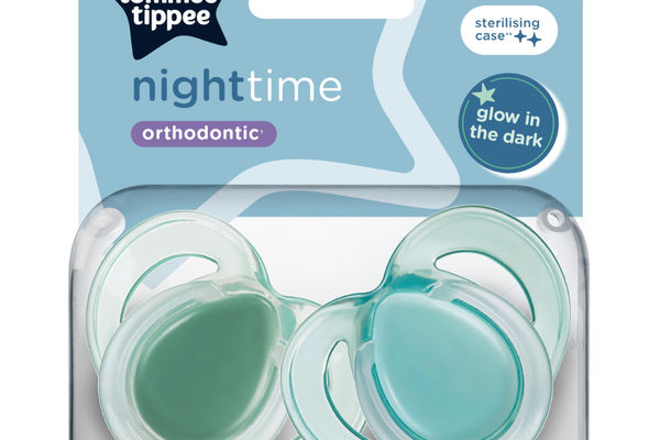 Suzetele ortodontice de noapte Tommee Tippee luminează în întuneric, au tetină simetrică din silicon și sunt proiectate pentru confortul pielii bebelușului.