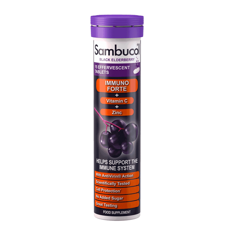 Capsulele Sambucol Immuno Forte Effervescent conțin soc negru precum și vitamina C și zinc, pentru a ajuta la întărirea sistemului imunitar. Ideal pentru cei cărora doresc o versiune mai ușoară a siropului sau un produs pentru drum, portabil.