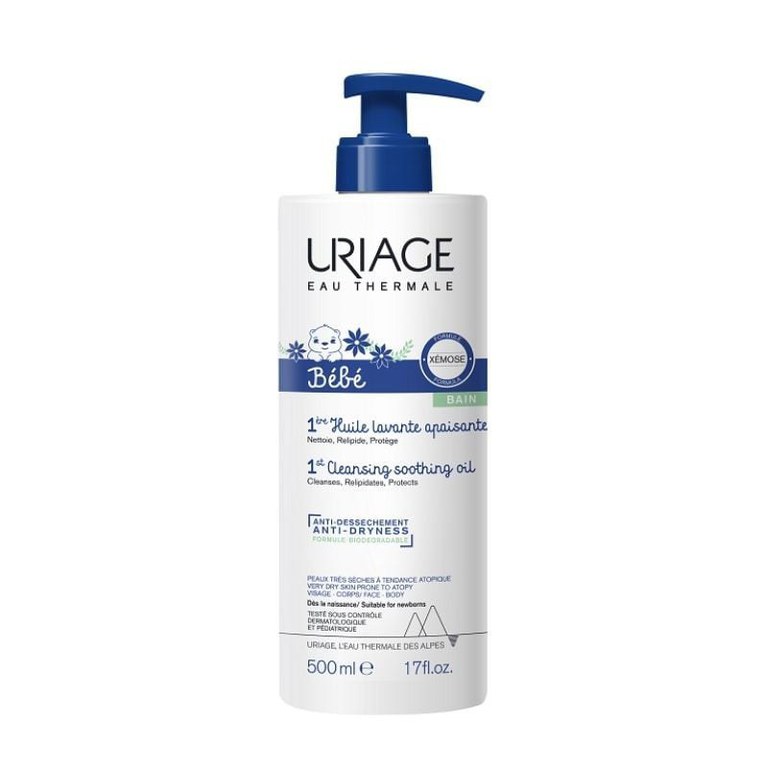 URIAGE 1er BEBE Ulei calmant de curatare protejeaza impotriva pielii uscate si calmeaza senzatiile de mancarimeBeneficii URIAGE 1er BEBE Ulei calmant de curatare:- textura sa fina si extrem de delicata reconforteaza instantaneu si pe termen lung pielea uscata si foarte uscata;- datorita concentratiei sale ridicate de glicerina, creeaza o pelicula protectoare neuleioasa care apara pielea impotriva agresiunilor externe;- formula imbogatita cu unt de Shea calmeaza senzatiile de mancarime, de piele care strange si disconfort;- fara sapun;- fara parfum;- hipoalergenic.Ingrediente URIAGE 1er BEBE Ulei calmant de curatare:AQUA (WATER, EAU) - GLYCERIN - HYDROGENATED STARCH HYDROLYSATE - SODIUM COCOAMPHOACETATE - PEG-7 GLYCERYL COCOATE - SODIUM COCOYLGLUTAMATE - SODIUM LAURETH SULFATE - SODIUM LAURETH-8 SULFATE - CETEARETH-60 MYRISTYL GLYCOL - POLYSORBATE 20 - COCO-GLUCOSIDE - GLYCERYL OLEATE - SODIUM CHLORIDE -CITRIC ACID - MAGNESIUM LAURETH SULFATE - SODIUM OLETH SULFATE - POLYQUATERNIUM-10 - MAGNESIUM LAURETH-8 SULFATE - PEG-75 SHEA BUTTER GLYCERIDES - MAGNESIUM OLETH, SULFATE - SODIUM ACETATE - BRASSICA CAMPESTRIS (RAPESEED) STEROLS - RASPBERRY SEED OIL/PALM OIL AMINOPROPANEDIOL ESTERS.Cerasterol-2F®, complex patentat Uriage: restructurant si calmant, Apa Termala Uriage: calmanta, hidratanta, filmogenica, reface bariera cutanata, Glicerina, Extract de unt de Shea, Agenti emolienti: mentin filmul hidrolipidic intact, hidrateaza, reduc rugozitatile.Mod de utilizare URIAGE 1er BEBE Ulei calmant de curatare:Amestecati cu apa o cantitate de produs rezultata dintr-o pompare si masati usor amestecul pe pielea umezita. Clatiti si uscati prin tamponare. Se utilizeaza zilnic pentru a mentine pielea hranita, catifelata si supla.