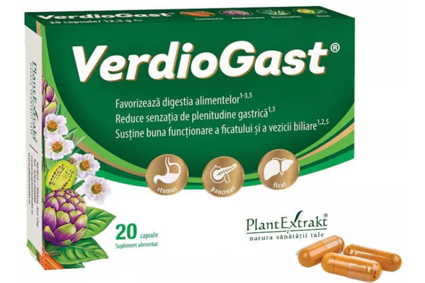 VerdioGast® este un produs cu ingrediente naturale. Contine extracte standardizate, care contribuie la digestia alimentelor, reduc senzatia de plenitudine gastrica si sustin buna functionare a ficatului si a vezicii biliare.