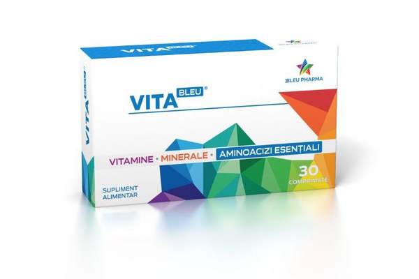 BLEU PHARMA aduce pentru prima data in Romania VITABLEU o combinatide de multivitamine si minerale fortificate cu aminoacizi esentiali.Hrana moderna a pierdut 80% dintre nutrientii esentiali. Vitaminele, mineralele sunt necesare pentru un nivel de energie normal. Atunci cand acestea sunt fortificate cu aminoacizi esentiali cresc imunitatea.