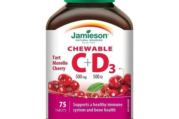 Vitamina C 500mg + Vitamina D 500 UI cu aroma de cirese, 75 tablete masticabile, Jamieson
