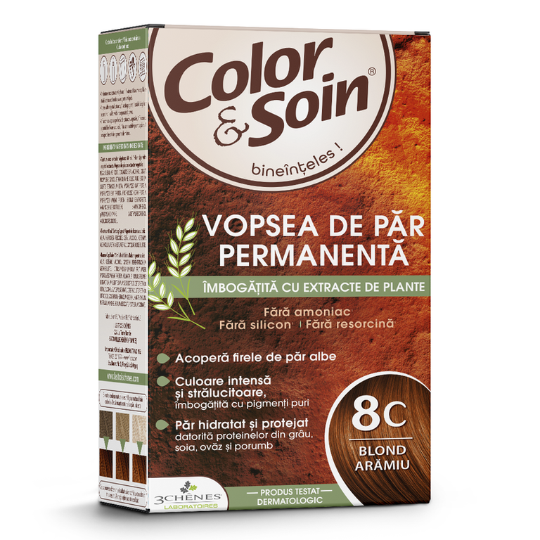 Vopsea de par fara amoniac, fara silicon, blond aramiu, 8C, Color&Soin