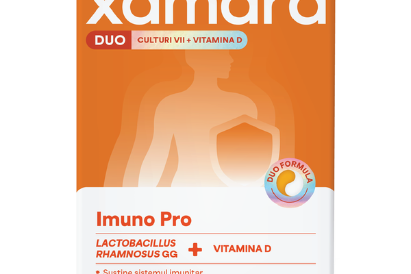 Xamara Duo Imuno Pro este un supliment alimentar ce combina probioticul Lactobacillus rhamnosus GG (ATCC 53103) cu vitamina D3, avand rol in sustinerea sistemului imunitar si a sanatatii organismului.