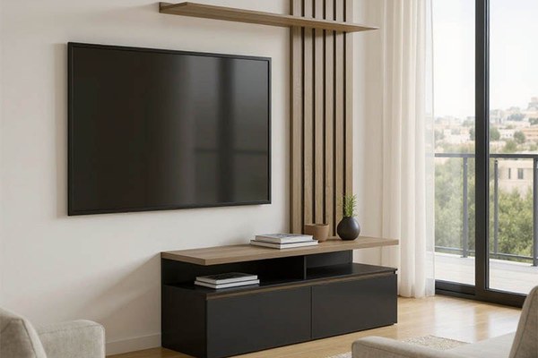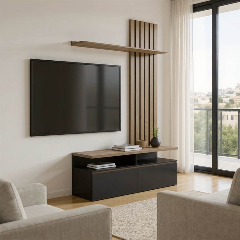 Ansamblu comoda TV Perlento Negru 140x41x219.5 cm