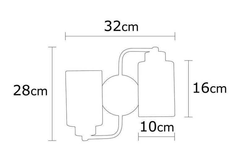 •Corp metalic •Abajur de sticla •Diametru: 32 cm •Inaltime: 28 cm •Diametrul Abajurului: 10 cm •Inaltimea Abajurului: 16 cm •Diametrul bazei suport: 12 cm •Inaltimea bazei suport: 3 cm •Tip de priza: 2 X E 27 Max 40 W •Cod IP: IP20