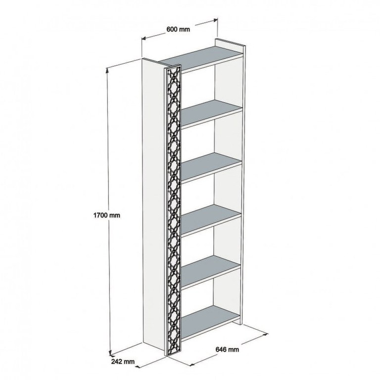 100% PAL Laminat Grosime: 18 mm 4 mm Relief CNC Picioare din plastic Latime: 64,6 cm Inaltime: 170 cm Adâncime: 24,2 cm Numeroase rafturi Pot fi fixate pe perete Numar pachete: 1 Dimensiune Pachet: 26x175x10 cm Greutate totala mobilier: 15 kg