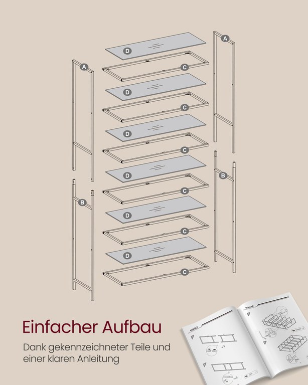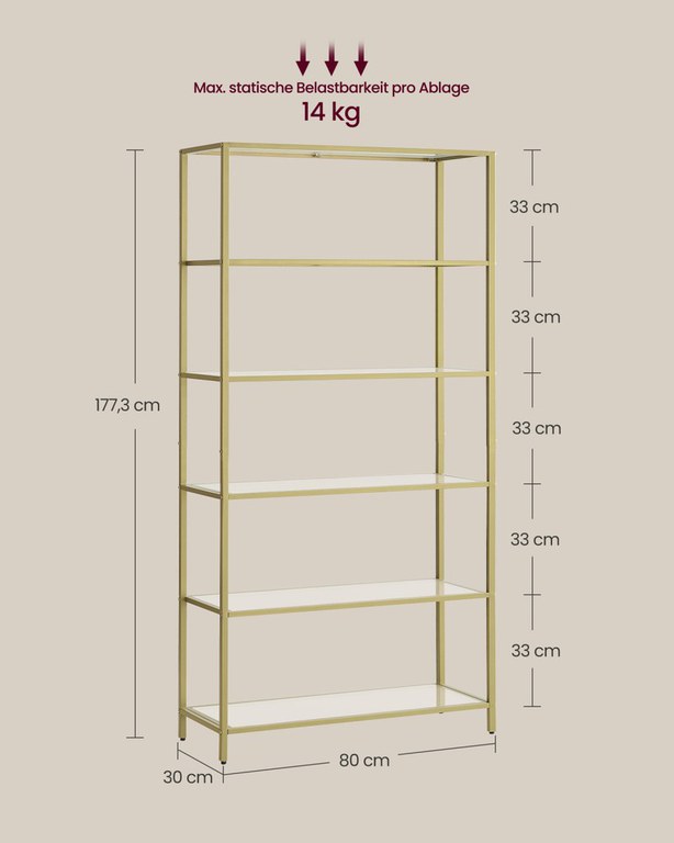 Biblioteca Vasagle Auriu 80x30x176.5 cm