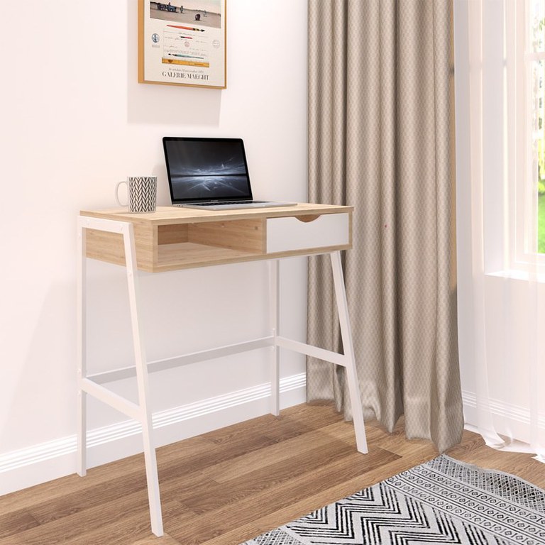 Birou cu raft Rezio, Pako World, Alb, 75x45x76 cm