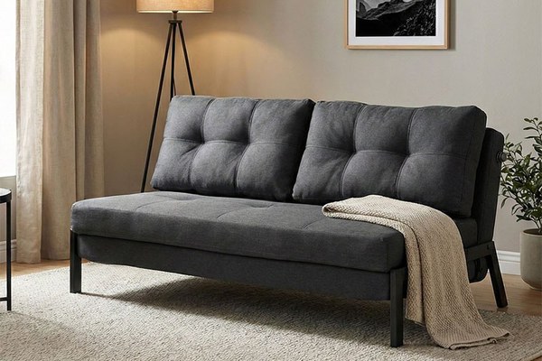 Canapea extensibilă 2 locuri Fancy - Confort și stil în livingul tău Design și materiale de calitate Canapeaua extensibilă Fancy se remarcă printr-un design modern și o estetică elegantă , perfectă pentru orice spațiu. Realizată din lemn PAL și metal , aceasta îmbină durabilitatea cu confortul. Culoarea gri închis adaugă un aer sofisticat, iar picioarele din metal negru completează aspectul contemporan. Funcționalitate și organizare Această canapea nu este doar un element decorativ, ci și o soluție practică pentru nevoile tale. Cu dimensiuni de 150x92x77 cm, se transformă cu ușurință într-un pat dublu de 150x200 cm, oferind un loc confortabil pentru oaspeți. În plus, include două perne decorative mari, care adaugă un plus de confort și stil. Montaj și întreținere Canapeaua se livrează neasamblată , dar nu-ți face griji! Instrucțiunile de asamblare sunt incluse, iar montajul este simplu. Întreținerea se face ușor, cu o lavetă moale pentru a curăța suprafețele din metal și material . Evită produsele chimice dure pentru a menține calitatea materialelor. Comandă acum și transformă-ți spațiul! Nu rata ocazia de a adăuga un strop de eleganță și confort în casa ta. Comandă canapeaua Fancy și bucură-te de momente de relaxare! Detalii tehnice complete Dimensiuni și greutate Dimensiuni produs: 150 x 92 x 77 cm Greutate produs: 38 kg Materiale și caracteristici Material corp: Lemn PAL / Metal Material finisaj/tapițerie: Material textil Culoare: Gri închis Număr pachete: 1 Montaj și pachet Stare asamblare: Neasamblat Conținut pachet: 1 x Canapea, Accesorii de montaj, Instrucțiuni Manual de asamblare: Descarcă aici Stil și origine Stil: Modern Destinație recomandată: Living / Birou