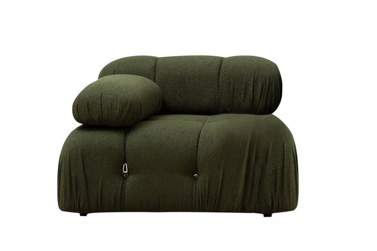 • Cadrul: Lemn de fag si PAL • Tapiterie: Material textil ( 100% poliester ) • Umplutura Spate/Lateral: Spuma poliuretanica densitate 28 DNS • Lungime: 95 cm Latime: 95 cm Inaltime: 75 cm • Umplutura sezut: Strat de spuma poliuretanica moale cu densitate DNS 28 si un strat de spuma cu densitate 24 DNS si arcuri / Sezut: Cu arcuri • Umplutura Spate/Lateral: 60% Spuma poliuretanica moale + 40 % Spuma Siliconata • Sistem: Spatar detasabil manual • Adancime sezut: 65 cm • Armrest Adancime: 60 cm • Sezut fix • Materialul se curata usor • Picioare: din plastic - Culoare : Negru mat • Poate fi personalizat cu alte unitati modulare