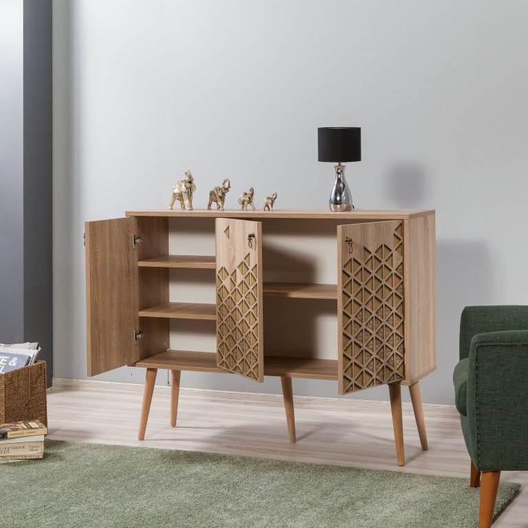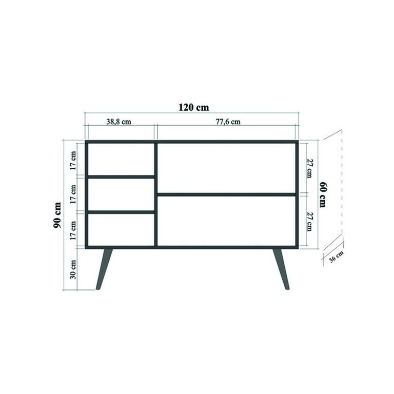 • 100% PAL melaminat•Grosime PAL: 18 mm•Picioare din lemn de carpen•Manere din metal și frânghie•Acoperire UV•Lățime: 120 cm Inălțime: 90 cm Adâncime: 36 cm•Dimensiunile raftului din dreapta: Lățime: 77,6 cm Inălțime: 27 cm•Dimensiunile raftului din stânga: Lățime: 38,8 cm Inălțime: 17 cm•Înălțimea picioarelor: 30 cm•Numeroase rafturi•Poate fi fixat pe perete•Spațiu de depozitare suplimentar