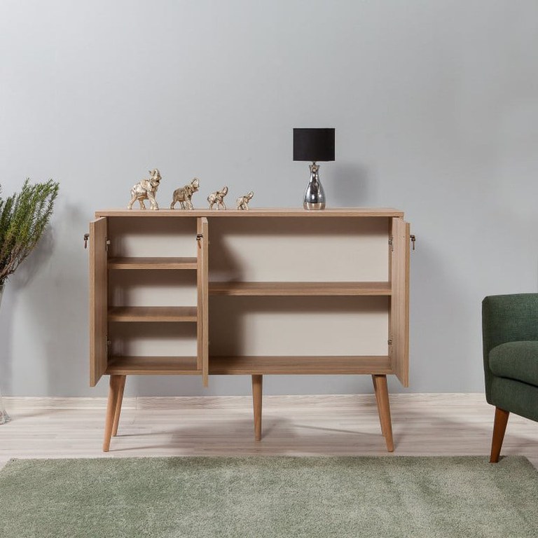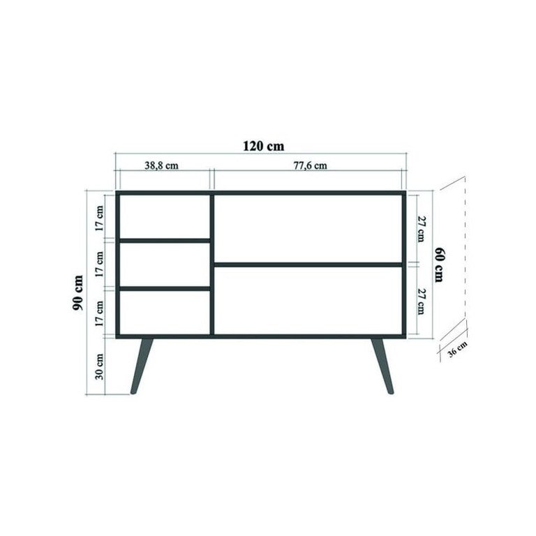 • 100% PAL melaminat •Grosime PAL: 18 mm •Picioare din lemn de carpen •Manere din metal și frânghie •Acoperire UV •Lățime: 120 cm Inălțime: 90 cm Adâncime: 36 cm •Dimensiunile raftului din dreapta: Lățime: 77,6 cm Inălțime: 27 cm •Dimensiunile raftului din stânga: Lățime: 38,8 cm Inălțime: 17 cm •Înălțimea picioarelor: 30 cm •Numeroase rafturi •Poate fi fixat pe perete •Spațiu de depozitare suplimentar