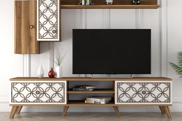 100% PAL Laminat Grosime: 18 mm 4 mm Relief CNC Picioare din plastic Dimensiune TV: Lățime: 180 cm Înălțime: 44 cm Adâncime: 35 cm Numeroase rafturi Pot fi fixate pe perete Numar pachete: 3 39 x 184 x 10 cm / 29,4 kg (1 Bucata) 31 x 67 x 19 cm / 15,1 kg (1 Bucata) 21 x 26 x 16 cm / 1,8 kg (1 Bucata) Dimensiune Pachet: 184x39x29 cm Greutate totala mobilier: 46.3 kg