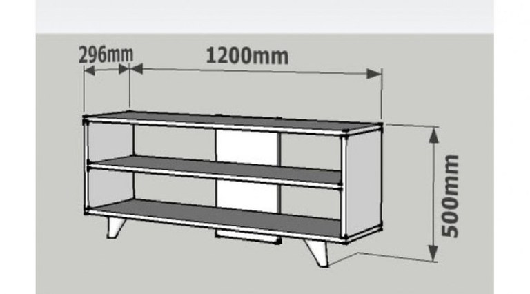 100% PAL Laminat GROSIME: 18 mm Latime: 120 cm Inaltime: 50 cm Adâncime: 29,6 cm Numeroase rafturi Depozitare suplimentara Numar pachete: 1 Dimensiune Pachet: 135x35x10 cm Greutate totala mobilier: 15 kg