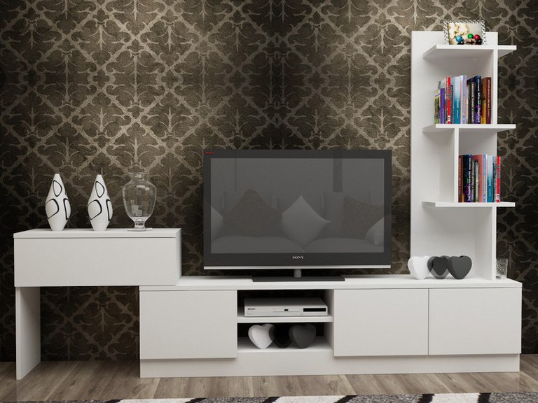 100% PAL LaminatGrosime: 18 mmDimensiune suport TV: Lățime: 120 cm Înălțime: 38 cm Adâncime: 29,5 cmDimensiune dulap: Lățime: 40 cm Înălțime: 150 cm Adâncime: 29,5 cmDimensiune măsuță laterală: Lățime: 65 cm Înălțime: 60 cm Adâncime: 29,5 cmNumeroase rafturiPot fi fixate pe pereteNumar pachete: 1Dimensiune Pachet: 47x167x17 cmGreutate totala mobilier: 46.25 kg