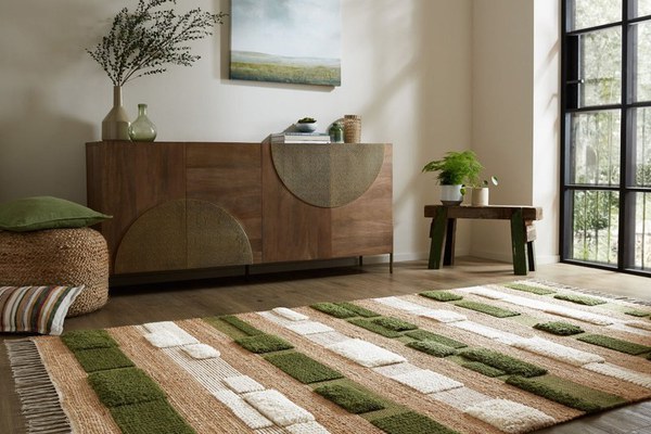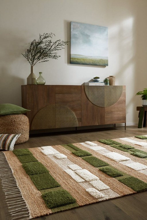 Covor Medina Blocks Verde 160x230 cm - Flair Rugs Descoperiți Covorul Medina Blocks , o alegere excelentă pentru a adăuga un strop de eleganță și personalitate oricărui spațiu. Cu un design geometric captivant și culori vibrante de verde și nuanțe naturale, acest covor este perfect pentru a transforma livingul sau dormitorul dumneavoastră într-un loc primitor și plin de stil. Design și Materiale de Calitate Fabricat dintr-un amestec de iută și lână , acest covor nu doar că arată bine, dar oferă și o textură plăcută la atingere. Fiecare covor este țesut manual în ateliere tradiționale din India , ceea ce îi conferă un plus de autenticitate și rafinament. Densitatea materialului de 2000 gr/mp și înălțimea firului de 25 mm asigură un confort sporit și o durabilitate excelentă. Caracteristici Tehnice Dimensiuni: 160x230 cm Greutate: 7.79 kg Suprafață: 3.68 metri pătrați Forma: Dreptunghiular Culori: Verde, Natural Antiderapant: Nu Material față: Iută și Lână Material verso: Fără material verso Țara de origine: India Metoda de fabricație: Țesut de mână Instructiuni de întreținere: Utilizați un covor antiderapant pentru a preveni alunecarea. O mică pierdere de fibre este normală; nu trageți de fibrele libere, ci tăiați-le cu foarfecele. Absorbiți imediat petele cu o cârpă albă, uscată. Testați produsele de curățare pe o zonă ascunsă pentru a verifica eventualele schimbări de culoare. Rulați covorul timp de 24 de ore pentru a reduce încrețirea. Răsuciți-l regulat pentru a asigura o uzură uniformă. Folosiți un aspirator cu tip de aspirație - perii rotativi pot deteriora covorul. Transformați-vă Spațiul cu Stil Covorul Medina Blocks este mai mult decât un simplu accesoriu; este o piesă de artă care va aduce un plus de stil și confort în casa dumneavoastră. Ideal pentru un decor inspirat din diferite colțuri ale lumii, acest covor este durabil și perfect pentru zonele cu trafic intens. Comandați Acum! Nu ratați ocazia de a adăuga acest covor elegant în casa dumneavoastră! Comandați acum și transformați-vă spațiul într-un loc deosebit, plin de căldură și stil.