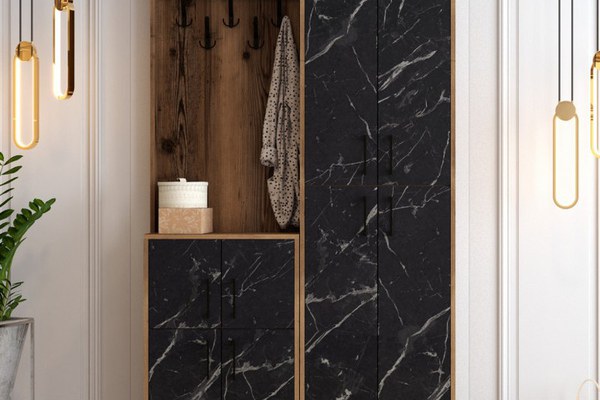 Cuier pentru Hol Berlin BA - Walnut, Negru Marble