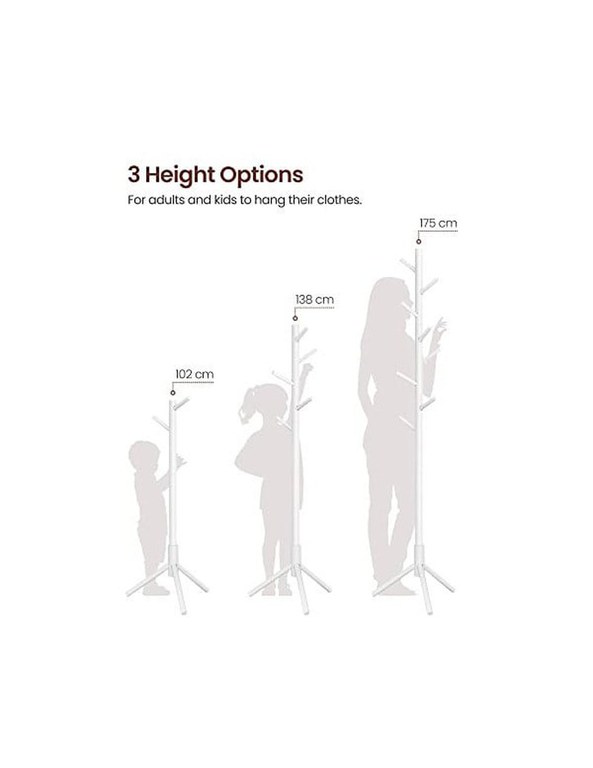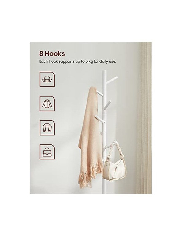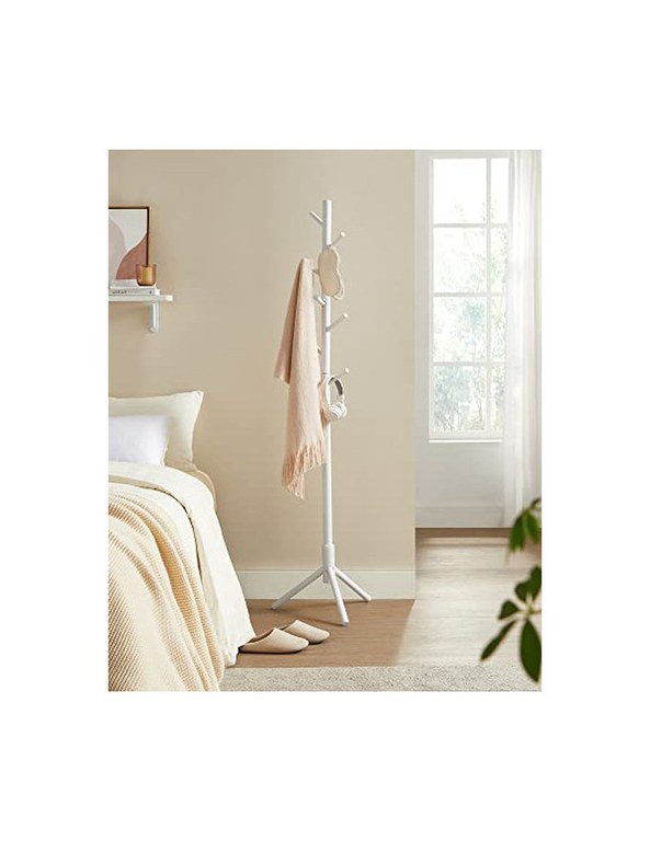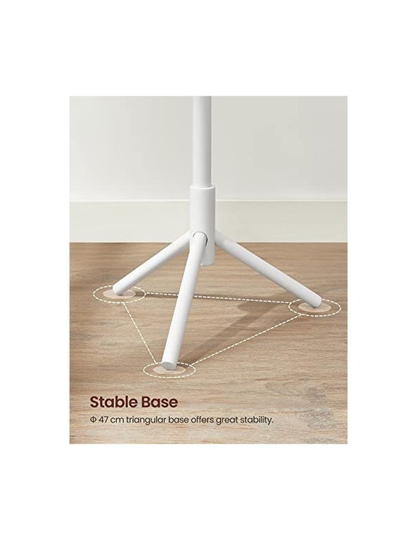 •Specificatii: •Culoare: Alb •Material: Lemn •Dimensiuni: 47 x 47 x 175 cm (L x W x H x H)•Lungimea fiecărui cârlig: 12,3 cm•Greutate: 2.2 kg•Pachetul contine: 1 x suport pentru haine 1 x instrucțiuni