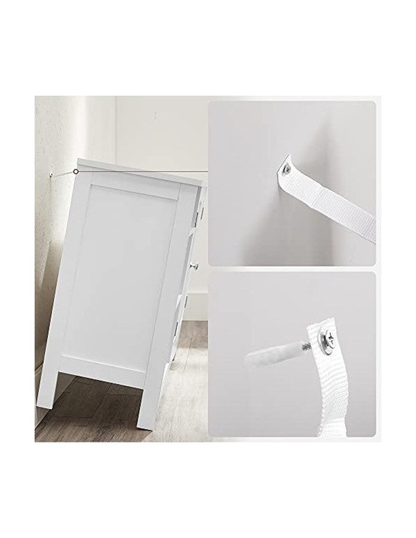 •Specificatii: •Color: Alb •Material: MDF •Dimensiuni: 90 x 30 x 60 cm (L x W x H) •Greutate: 13.5 kg •Pachetul contine:1 x dulap de sub chiuvetă1 x kit de accesorii2 x kit anti-răsturnat1 x instrucțiuni