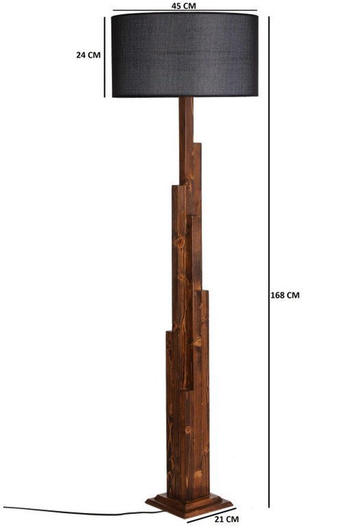 Corp din lemn de brad Capac textil Lungimea capacului: 24 cm Diametrul capacului: 45 cm Dimensiuni: 21 x 21 cm Total Inaltime: 160 cm Buton On/Off pe cablu Tip: E 27 Max 60 W A++ Tensiunea maxima: 220-240 V