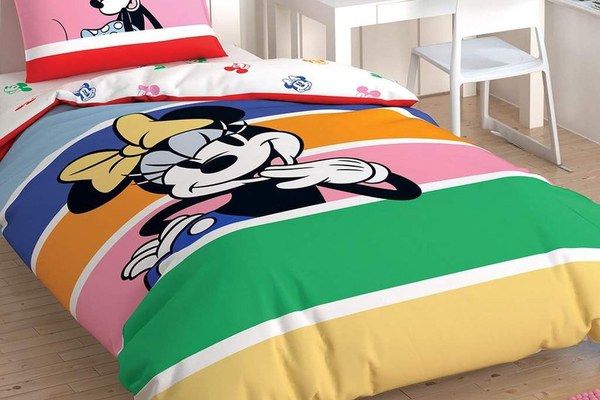 Lenjerie 1 Persoana cu Elastic 100x200 Minnie Mouse Rainbow (Bumbac 100%)