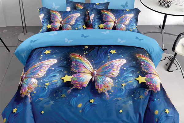 Lenjerie 3D Fluturasi albastru curcubeu Piese (Finet)