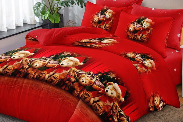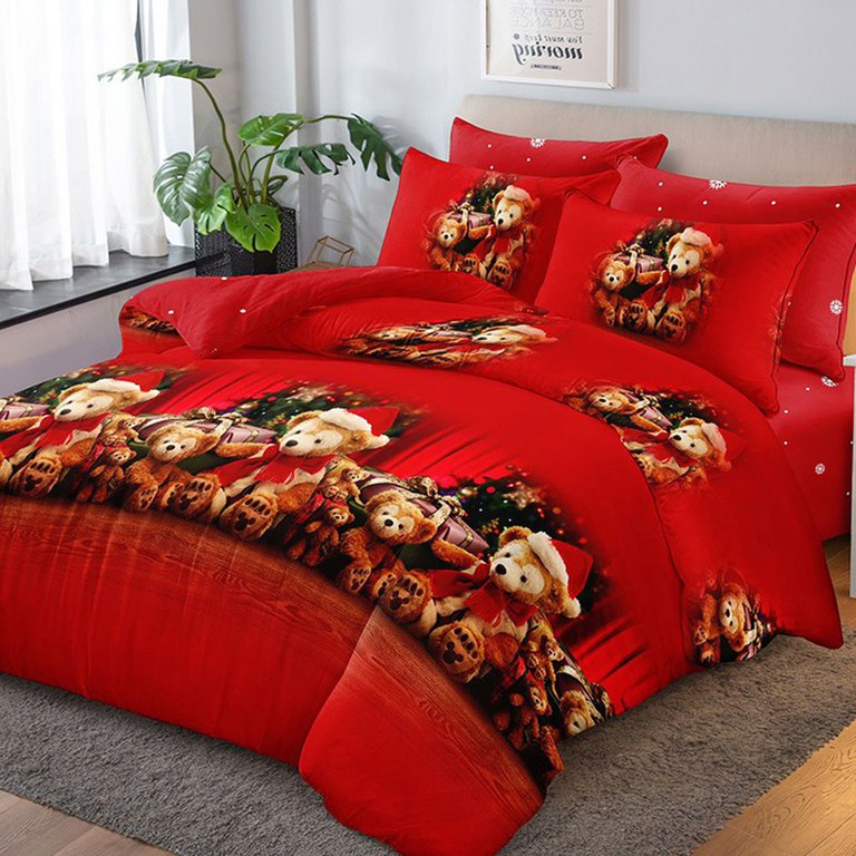 Lenjerie de pat, model de Craciun, pentru 2 persoane, cu 6 piese, brand Pucioasa, confectionata din finet. Setul contine: Cearsaf de pilota: 200cm x 230cm Cearsaf de pat: 230cm x 250cm Fata de perna: 50cm x 70cm (2 bucati) Fata de perna: 70cm x 70cm (2 bucati) ✔ Inchidere prin suprapunere la perne, cu fermoar la cearsaful de pilota ✔ Confectionata din Finet, tesatura mai groasa si placuta la atingere ✔ Imprimata folosind cele mai noi tehnici, rezistenta la decolorare ✔ Ambalaj compact, din PVC cu capse ✔ Nu necesita calcare neaparata ✔ Densitate: 130 GSM Instructiuni: Se spala la 30°C automat Nu se folosesc inalbitori chimici Se calca la maximum 130°C