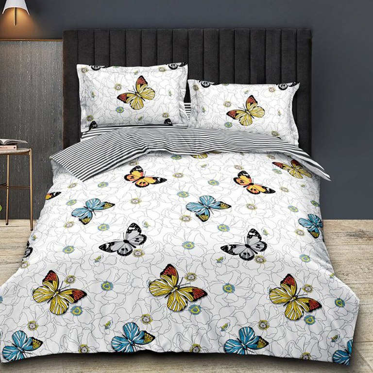 Lenjerie de pat pentru 2 persoane, confectionata din bumbac satinat, cu 4 piese, brand Dormy. Setul contine: Cearsaf de pilota: 200cm x 230cm Cearsaf de pat: 180cm x 200cm (cu elastic) Fata de perna: 50cm x 70cm (2 bucati) ✔ Confectionata din Bumbac Satinat, fin si placut la atingere ✔ Imprimata folosind cele mai noi tehnici, rezistenta la decolorare ✔ Inchidere prin suprapunere la perne, cu fermoar la cearsaful de pilota ✔ Cearsaf de pat cu elastic, pentru o mai buna fixare asupra saltelei ✔ Cearsaf de pat cu elastic potrivit pentru saltele cu grosime de pana in 25 cm ✔ Ambalaj compact din PVC transparent cu capse ✔ Densitate: 90 GSM Instructiuni: Se spala la 30°C automat Nu se folosesc inalbitori chimici Se calca la maximum 130°C