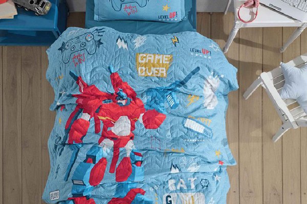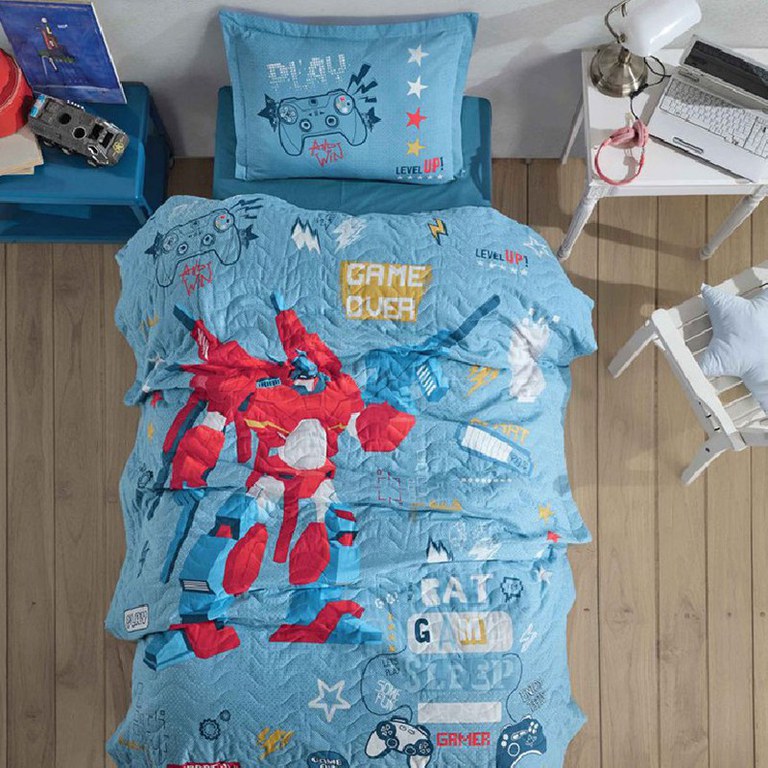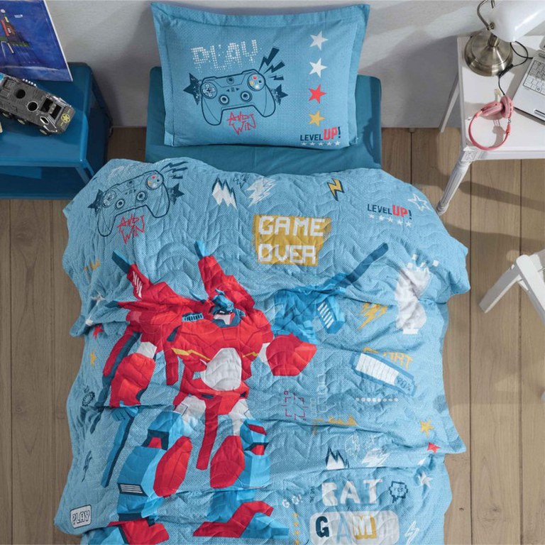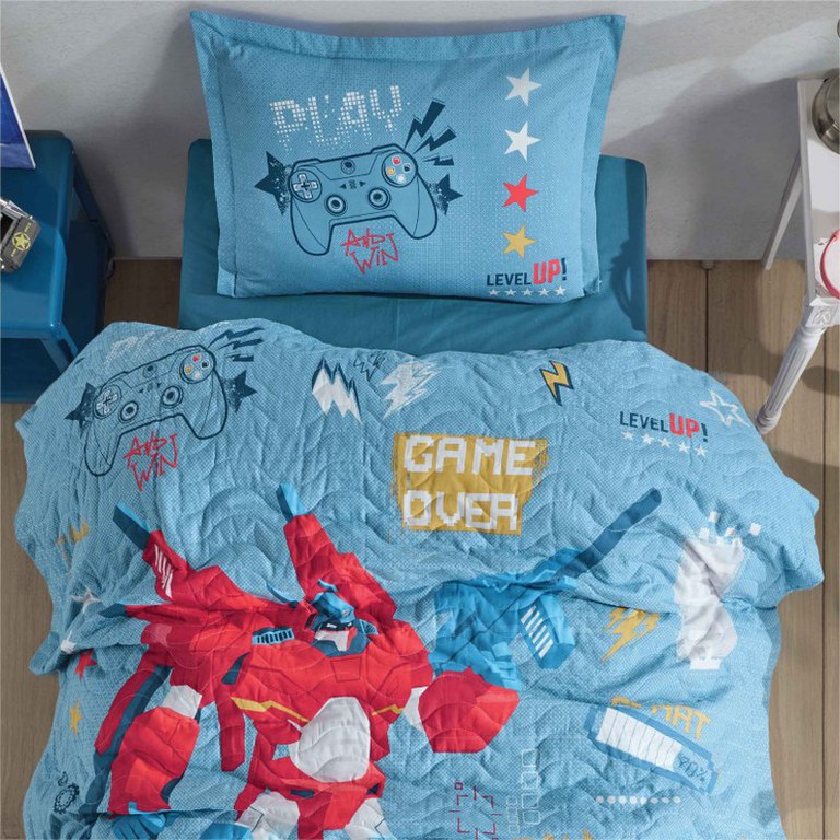 Lenjerie si Cuvertura 1 Persoana Game Over Albastru (Bumbac 100%)