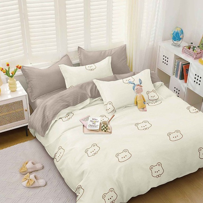 Lenjerie de pat pentru 2 persoane, cu 4 piese, brand Pucioasa, confectionata din Bumbac Satinat. Setul contine: Cearsaf de pilota: 200cm x 230cm Cearsaf de pat: 245cm x 250cm Fata de perna: 50cm x 70cm (2 bucati) ✔ Inchidere prin suprapunere la perne, cu fermoar la cearsaful de pilota ✔ Confectionata din Bumbac Satinat, tesatura mai groasa si placuta la atingere ✔ Imprimata folosind cele mai noi tehnici, rezistenta la decolorare ✔ Ambalaj compact, din PVC cu capse ✔ Nu necesita calcare neaparata ✔ Densitate: 130 GSM Instructiuni: Se spala la 30°C automat Nu se folosesc inalbitori chimici Se calca la maximum 130°C ✔ Adaugă în coș oricare două lenjerii (diferite sau identice), din oferta 1+1 GRATIS și plătești doar una singură! Vezi toate modelele
