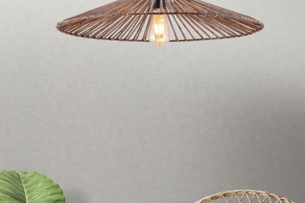 Corp din metal Capac din bambus replică Dimensiune șapcă: 61 x 61 cm Înălțime șapcă: 8 cm Înălțime totală: 45 cm Certificat CE Cablu reglabil Tip priză: E 27 Max 45 - 60 W