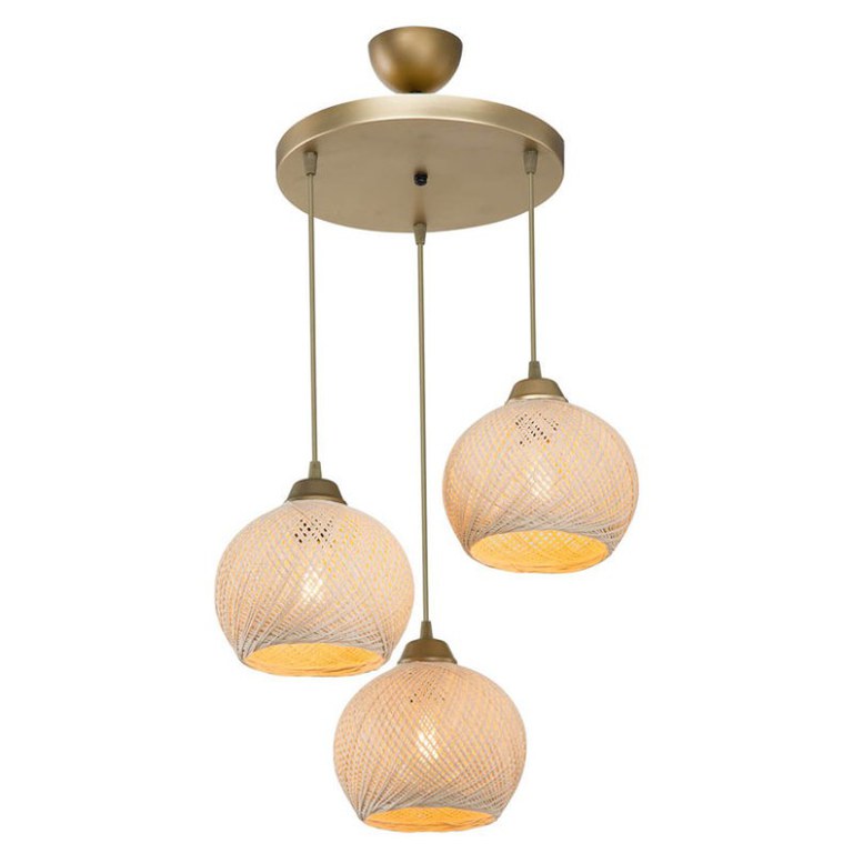 Lustra cu trei lumini PWL-1121 pakoworld E27 crem-Auriu Φ40x75cm Formele circulare din lămpi sunt întotdeauna impresionante și dau un nou suflu boho oricărui spațiu oriunde sunt amplasate. PWL-1121 este aici pentru a atrage capetele cu eleganța sa. Caracteristici tehnice: Corp lampi din Metal de calitate excelenta cu rezistenta la uzura si timp. Pălărie din stofă special concepută pentru iluminarea de rezistență. Designul perforat face ca lumina să difuzeze uimitor atunci când lampa este aprinsă. Oferit în culoare crem-Auriuie. Are locuri pentru trei lămpi de 60W care nu sunt incluse în pachet. Dimensiuni produs: Lungime: 40 cm Latime: 40 cm Inaltime: 75 cm