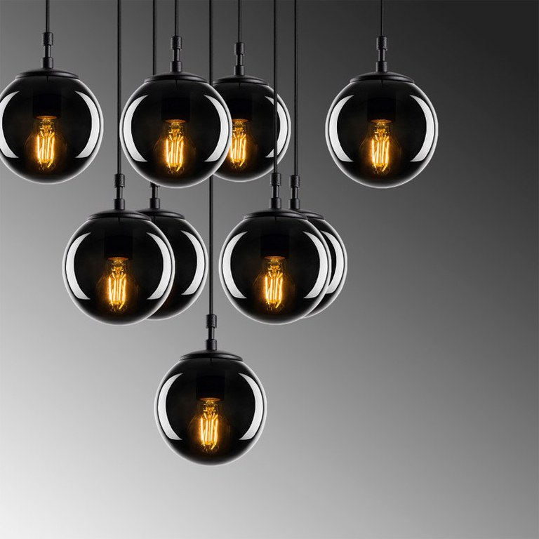 Corp din Metal capac din sticla Dimensiuni: 78 x 78 cm Inaltime: 110 cm Diametrul capacului: 15 cm Inaltimea capacului: 15 cm Inaltime ajustabila Dimensiunea bazei: 50 x 50 x 3 cm Lungimea cablului: 90 cm Tip: 9 x E 27 Max 40 W IP Code: IP20