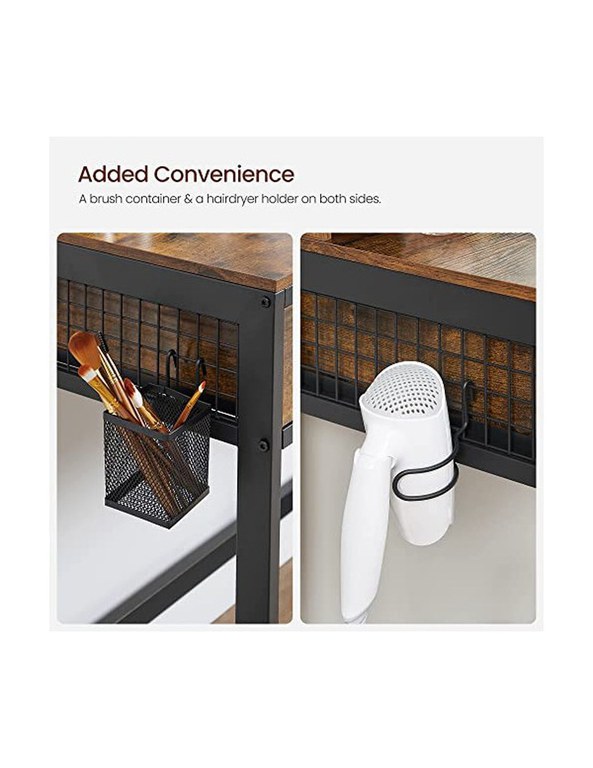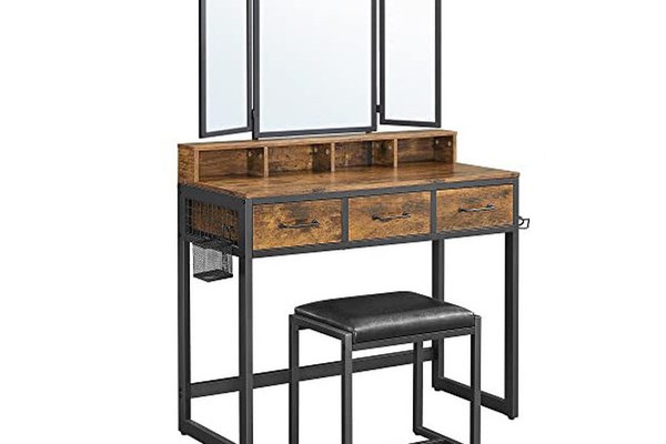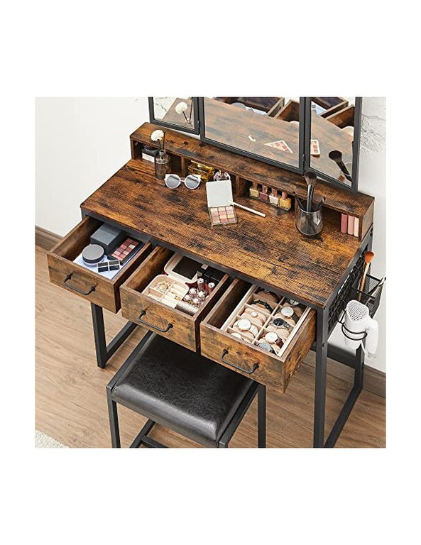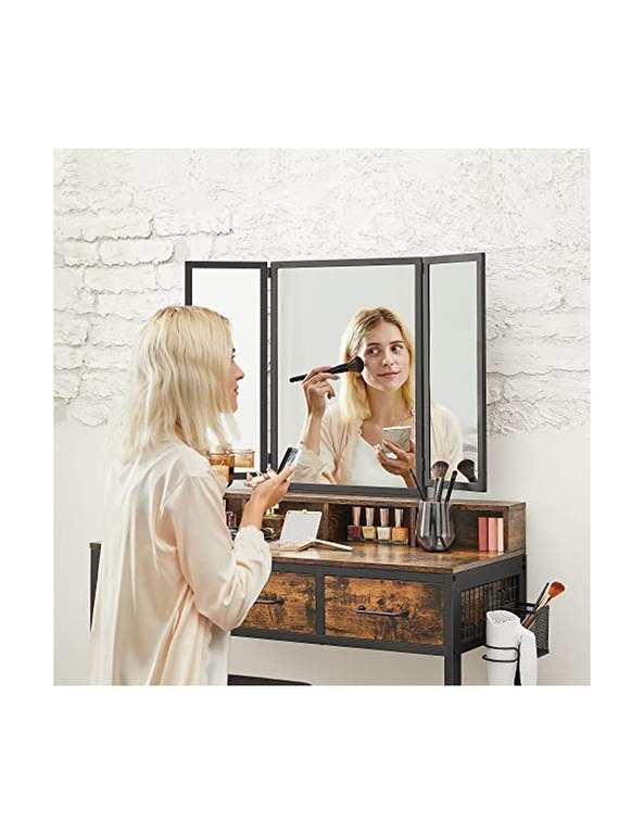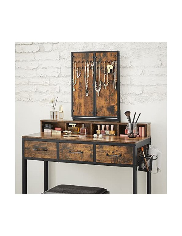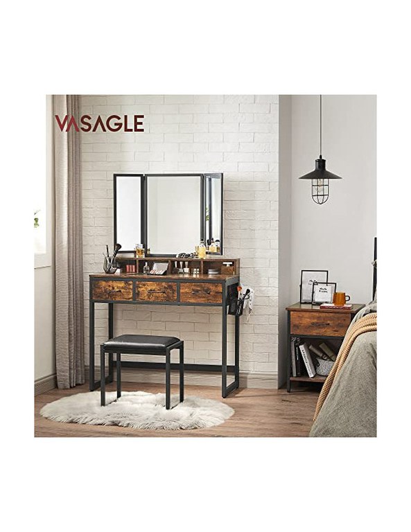 Masa de toaleta cu oglinda si taburet, Vasagle, RVT004B01, Maro Rustic, 40 x 90 x 141 cm