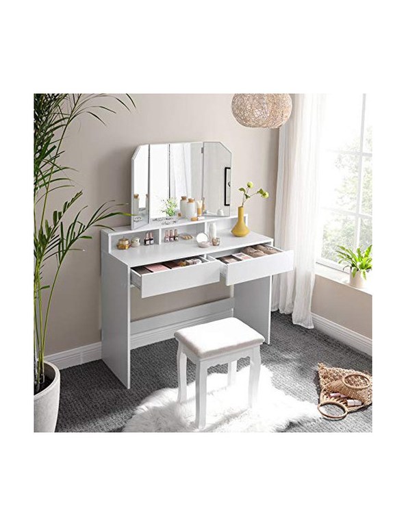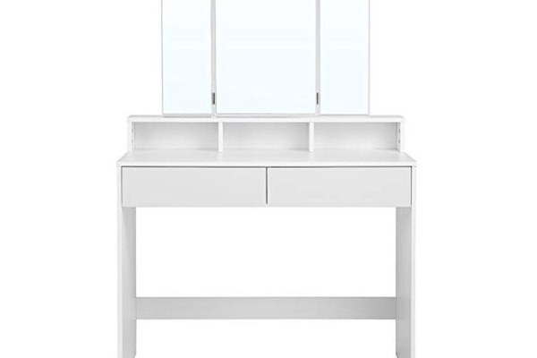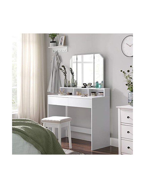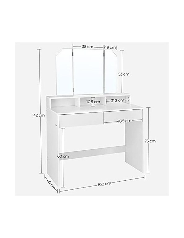 Masa de toaleta, Vasagle, cu oglinda, Alb, RDT115W01, 40 x 100 x 142 cm