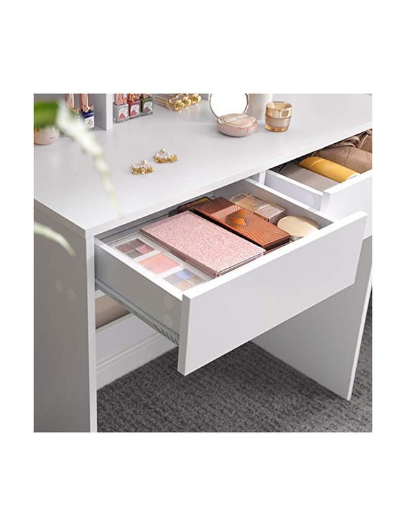•Specificatii:•Culoare: Alb•Material: PAL•Dimensiuni: 100 x 40 x 142 cm (L x W x H)•Greutate: 27.5 kg •Pachetul contine:1 x Masa de toaleta - 1 x Kit de accesorii - 1 x Kit anti-rasturnare - 1 x Instructiuni (EN, DE, FR, ES, IT)