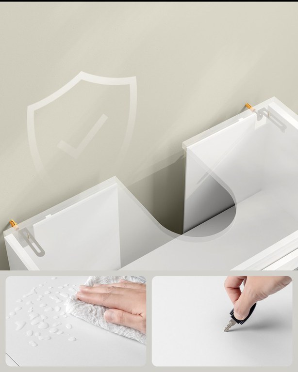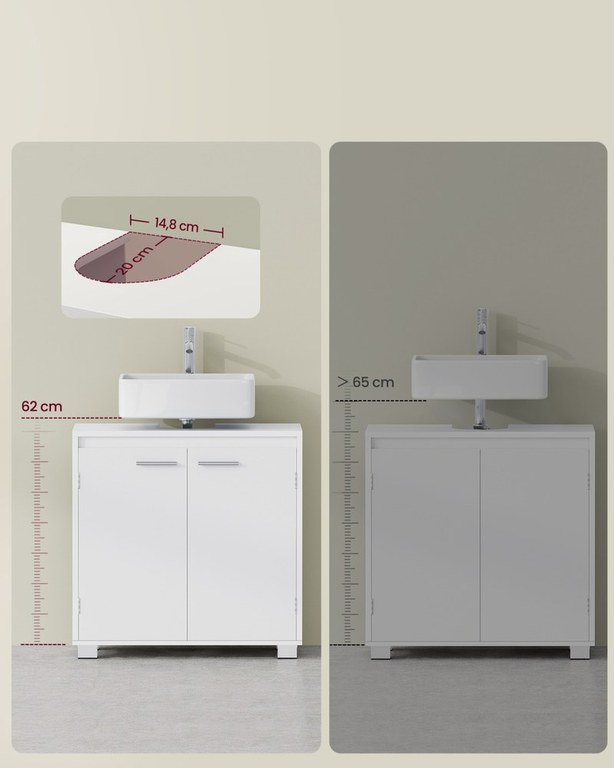 Masca lavoar Vasagle 60x30x60 cm — Organizare spațioasă și elegantă Design modern și materiale de calitate Linia curată și finisajul alb al acestei măști de lavoar conferă imediat băii tale o notă modernă și aerisită, transformând un colț utilitar într-un detaliu de design rafinat. Construită din plăci MDF și PAL atent prelucrate, piesa se simte solidă la atingere și păstrează un aspect îngrijit în timp, datorită suprafețelor ușor de întreținut. Prin combinația sa de rafinament , estetică , durabilitate și versatilitate , această mască devine un element premium care îmbunătățește ambianța oricărei băi. Funcționalitate și organizare Cele două compartimente spațioase aflate în spatele ușilor oferă loc generos pentru detergent, prosoape și produse de îngrijire, astfel încât cada și chiuveta să rămână mereu ordonate și aerisite. Polița reglabilă pe trei poziții permite adaptarea la sticle de dimensiuni diferite, optimizând fiecare centimetru disponibil și oferind flexibilitate în depozitare. Atenție: această mască este destinată exclusiv lavoarelor fără piedestal, deci este potrivită numai dacă alimentarea cu apă provine din perete; verifică deschiderea pentru sifon (20 x 14,8 cm) și dimensiunile măștii pentru a te asigura că se potrivește perfect în baie ta. Beneficiază astfel de un mobilier care îți aduce spațios , organizare și optimizare a locului. Montaj și întreținere Produsul se livrează neasamblat, iar montajul este simplificat prin kitul de asamblare inclus, astfel încât instalarea să fie rapidă și eficientă. Pentru siguranță sporită, pachetul conține un kit anti-răsturnare care asigură stabilitate și protejează familia ta, în special în locuințe cu copii. Suprafețele din MDF și PAL se curăță ușor cu o cârpă moale și umedă, evitând în același timp substanțele abrazive, ceea ce păstrează aspectul și durabilitatea piesei; în plus, designul facilitează întreținerea și contribuie la siguranță și întreținere facilă . Comandă acum Adaugă acum în coș această mască de lavoar și transformă-ți baia într-un spațiu organizat și plin de rafinament — livrare rapidă și montaj facil. Detalii tehnice complete Dimensiuni și greutate Dimensiuni produs: 60 x 30 x 60 cm Greutate produs: 10.8 kg Capacitate maximă: 60 kg Materiale și caracteristici Material corp: MDF și PAL Culoare: Alb Montaj și pachet Stare asamblare: Neasamblat Conținut pachet: 1 x Dulap de baie, 1 x Kit anti-răsturnare, 1 x Accesorii de montaj, 1 x Manual de asamblare Stil și origine Stil: Modern Destinație recomandată: Baie (pentru lavoare fără piedestal) Informații importante Această mască de lavoar este proiectată pentru a fi utilizată cu lavoare fără piedestal; funcționalitatea depinde de faptul că alimentarea cu apă provine din perete. Verifică cu atenție deschiderea pentru sifon (20 x 14,8 cm) și dimensiunile produsului înainte de achiziție pentru a evita neconcordanțe la instalare. Kitul anti-răsturnare inclus trebuie montat conform instrucțiunilor pentru a asigura stabilitatea și siguranța utilizatorilor.