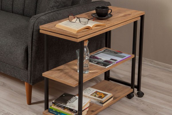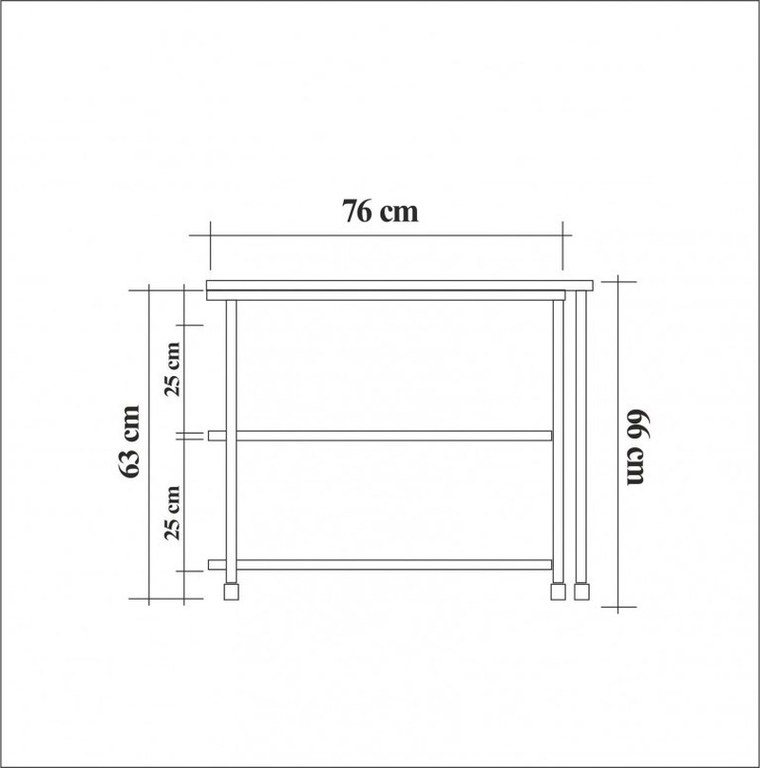 PAL Melaminat Grosime: 18 mm Ramă de Metal Masuta laterala Dimensiune totala: Latime: 30 cm Inaltime: 63 cm Lungime: 76 cm Inaltime raft: 25 cm Picioare cu roți Depozitare suplimentară Masă laterală multifuncțională cu 2 niveluri Ambalaj - Numar pachete: 1