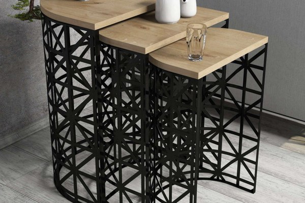 100% PAL Laminat Grosime: 18 mm Cadru: 100% METAL Masa de cuib mai mare: Lățime: 46 cm Înălțime: 62 cm Adâncime: 33 cm (1 bucată) >Masa de cuibarit medie: Latime: 41 cm Inaltime: 58 cm Adancime: 30 cm (1 bucata) Masa de cuibarit mai mica: Latime: 36 cm Inaltime: 53 cm Adancime: 27 cm (1 bucata) Numar pachete: 1 Dimensiune Pachet: 35x48x63 cm Greutate totala mobilier: 30 kg