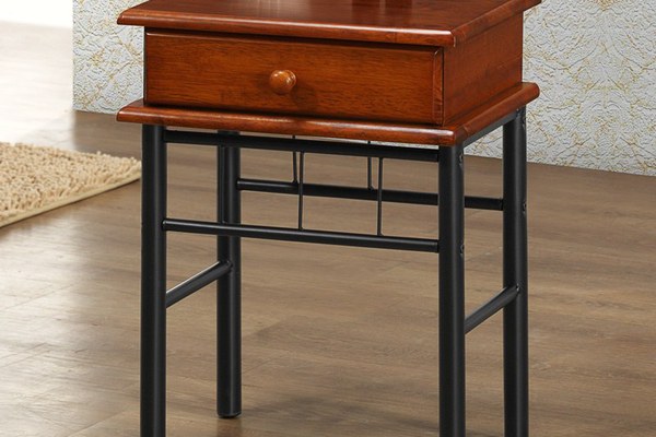 Masuta laterala cu sertar Marcole lemn culoare nuc si metal negru 45x33x58 cm