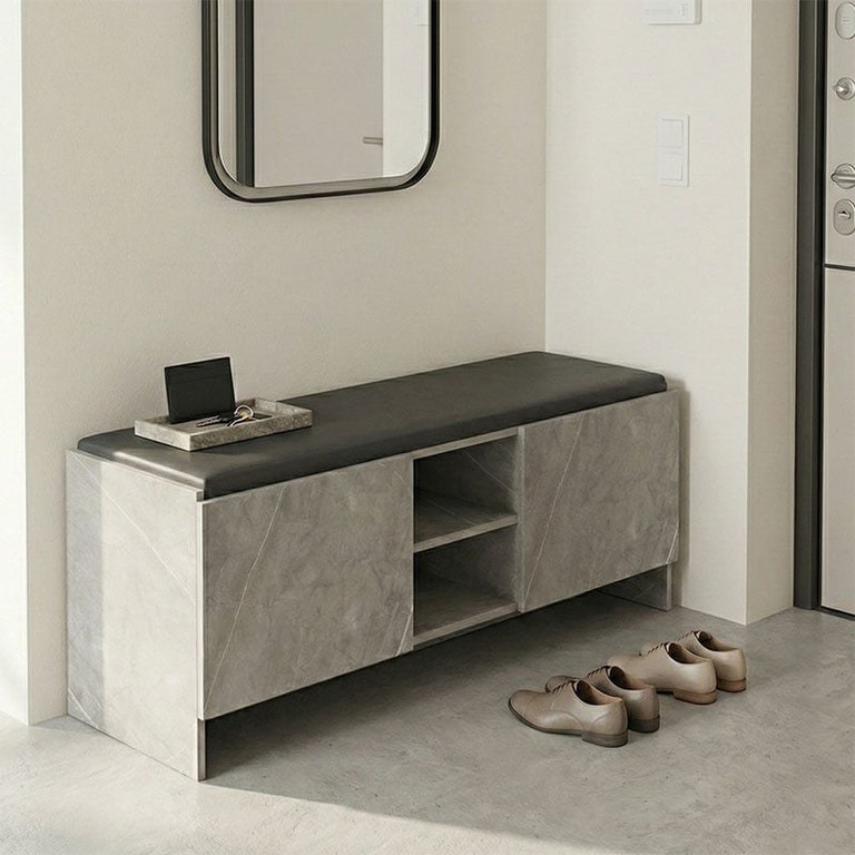 Pantofar banchetă cu depozitare Zulla — Confort și organizare elegantă pentru hol (110x37x43 cm) Design și materiale de calitate Zulla cucerește privirea printr-un finisaj cu efect marmură gri-bej și linii minimaliste, gândit pentru intrări primitoare. Corpul este realizat din Lemn PAL (particleboard) cu acoperire melaminică, iar finisajul melaminic este echivalent cu LPL — LPL (laminat cu presiune joasă) , pentru rezistență la uzură și aspect constant. Perna de ședere este o pernă moale detașabilă din PU — PU (poliuretan) — în nuanță închisă pentru contrast. Menționăm și Lemn MDF ca termen de referință în familia de materiale folosite frecvent în mobilier de calitate. Elementele cheie care definesc designul sunt eleganța , finisajul marmură și simplitatea . Funcționalitate și organizare Funcțiunea 2-în-1 transformă bancheta Zulla într-un aliat discret al holului: servește ca loc confortabil pentru încălțat și ca unitate practică de depozitare. Are două dulapuri cu uși batante pentru ascunderea încălțărilor și un spațiu deschis central cu raft pentru acces rapid la pantofii de zi cu zi sau coșulețe de accesorii. Dimensiunile compacte de 110 x 37 x 43 cm îl fac ideal pentru spații înguste, oferind organizare , spațiu de depozitare și comoditate într-un singur corp. Montaj și întreținere Produsul se livrează în ambalaj de fabrică, cu instrucțiuni detaliate de asamblare și toate elementele necesare incluse pentru a fi asamblat acasă. Curățarea se face ușor cu o lavetă moale , iar perna detașabilă permite întreținere simplă. Caracteristici esențiale: instrucțiuni de asamblare , accesorii de montaj și finisaj durabil . Comandă acum și transformă-ți spațiul! Adaugă un punct de eleganță funcțională în holul tău — comandă bancheta Zulla și bucură-te de confort imediat și ordine desăvârșită. Detalii tehnice complete Dimensiuni și greutate Dimensiuni produs: 110 x 37 x 43 cm Greutate produs: 25.5 kg Materiale și caracteristici Material corp: Lemn PAL / Lemn MDF Material finisaj/tapițerie: Finisaj LPL (melaminic) / Pernă: PU (poliuretan) Culoare: Gri Număr pachete: 1 Montaj și pachet Stare asamblare: Neasamblat Conținut pachet: 1 x Banchetă Pantofar Zulla, Accesorii de montaj, Instrucțiuni Stil și origine Stil: Modern / Minimalist Destinație recomandată: Hol