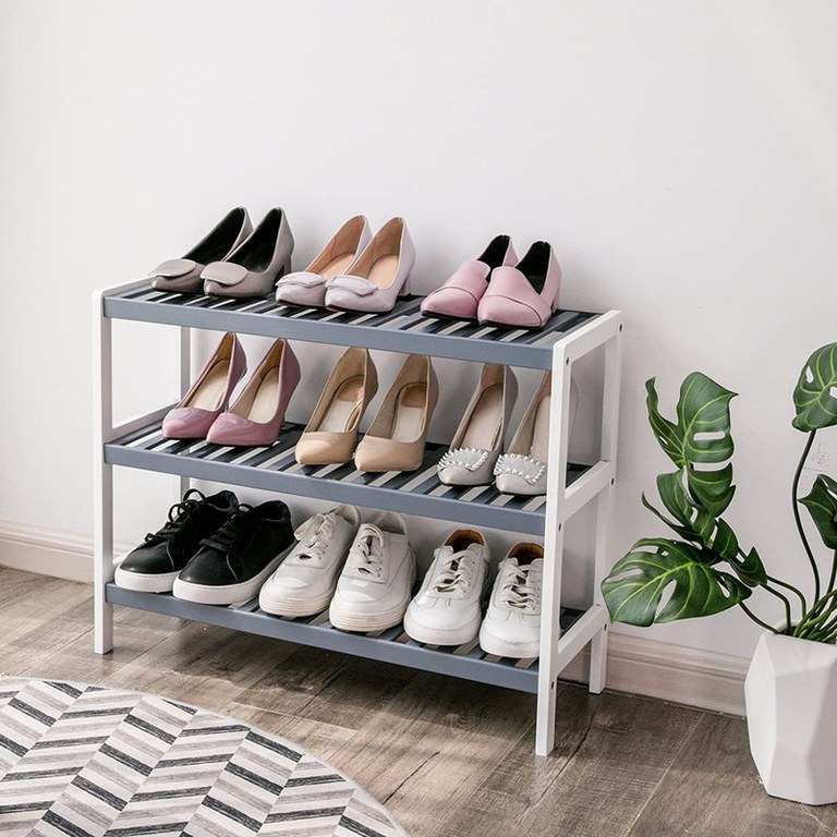 MATERIAL NATURAL: Acest suport pentru pantofi este realizat integral din bambus natural, solid deși nu este voluminos, structura simplă, foarte durabilă și bine finisată UȘOR DE MONTAT: Este format din 2 bucăți de cadru, 3 rafturi și 12 șuruburi. Poți termina ansamblul în doar câteva minute ECONOMIA DE SPAȚIU: Distanța de la podea la primul raft este de 8,5 cm, poți depozita papucii sau alte lucruri mărunte. În schimb, distanța dintre rafturi este de 18,5 cm, spațiu suficient pentru articole mai mari STRUCTURI STEBILE ȘI DURABILE: Designul unic al rafurilor oferă produsului o stabilitate și o capacitate de încărcare excepționale Practic: Finisajul rafturilor este la lacul transparent, convenabil de curățat. Material: bambus Dimensiune produs: 70x55x26 cm Dimensiune pachet (Lxlxh): 71x30x11 Greutate neta: 3,35 kg Greutate bruta: 3,9 kg Volum: 0,02343 CBM Culoare : Gri, alb