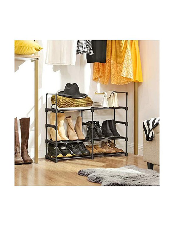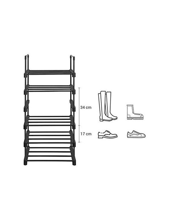 •Specificatii: •Culoare: Negru •Material: Metal •Dimensiuni: 45 x 30 x 106 cm (L x W x H) •Greutate: 2 kg •Pachetul contine:1 x suport pentru pantofi cu 6 niveluri1 x instrucțiuni (EN, DE, FR, ES, IT)