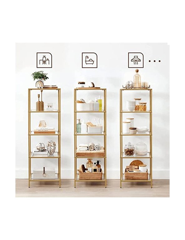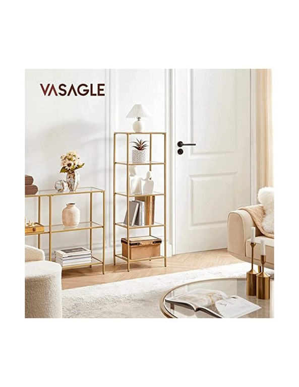 Raft cu 5 niveluri, Vasagle, Sticla securizata, LGT029A01, Auriu