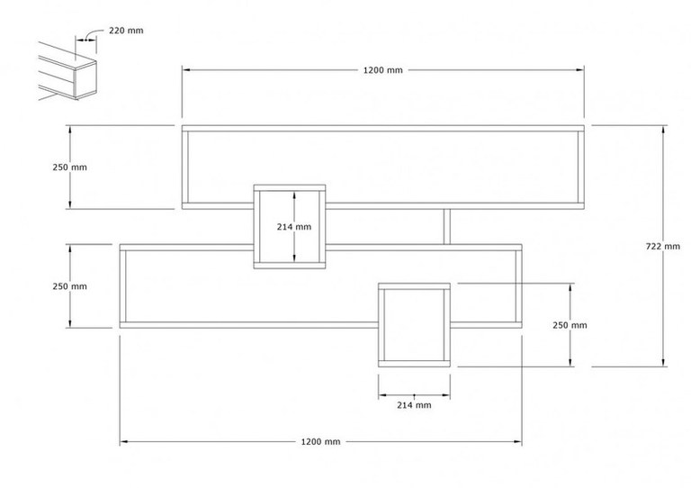 PAL Melaminat Grosime: 18 mm Latime: 120 cm Inaltime: 72,2 cm Adâncime: 22 cm Inaltime raft: 25 cm Dimensiune raft pătrat: Lățime: 21,4 cm Înălțime: 21,4 cm Numeroase rafturi Poate fi fixat pe perete Depozitare suplimentară Ambalaj - Numar pachete: 1